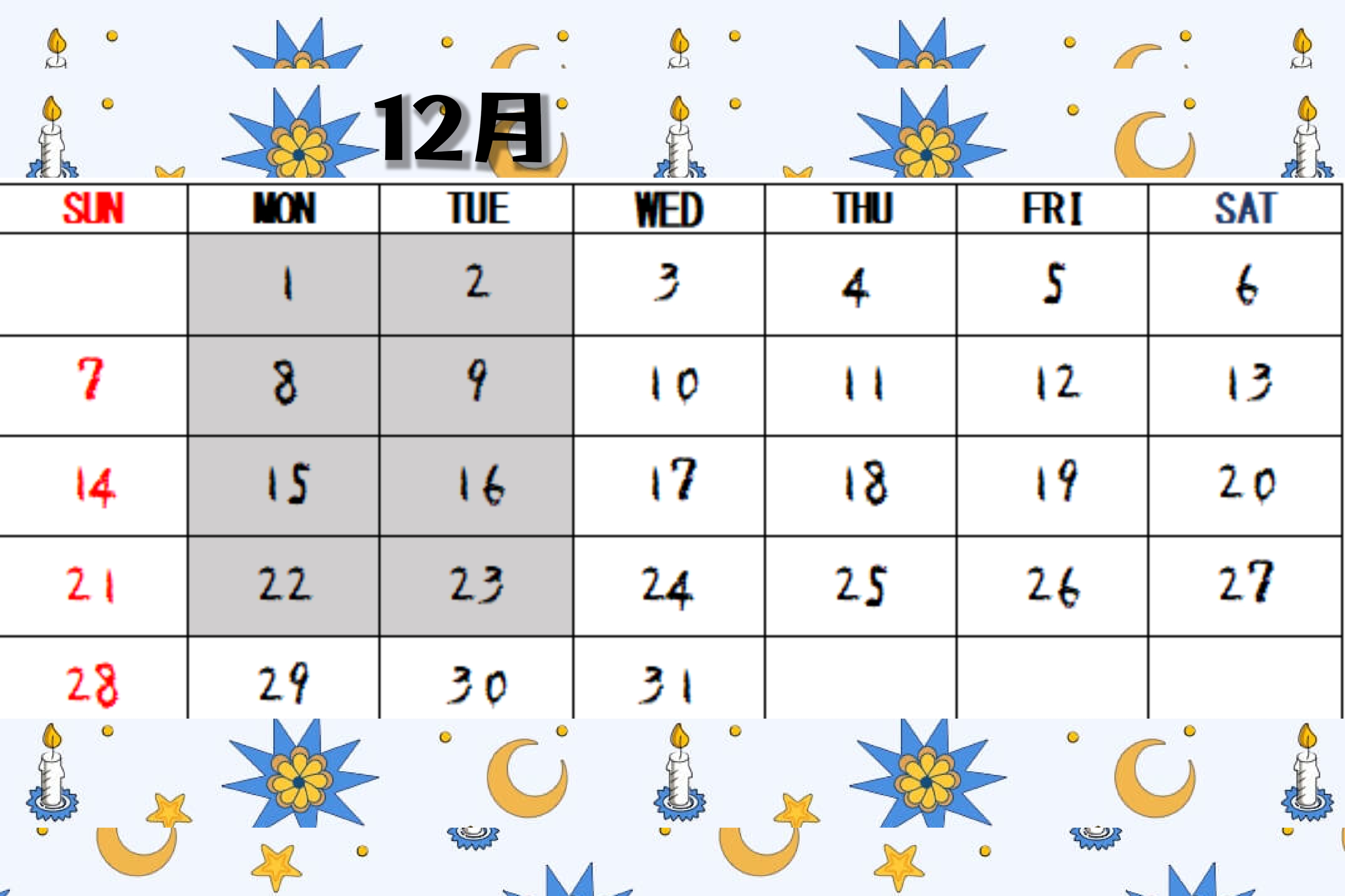 HOME > お知らせ > 休業日・営業時間のお知らせ > 12月休業日・年末営業時間のお知らせ