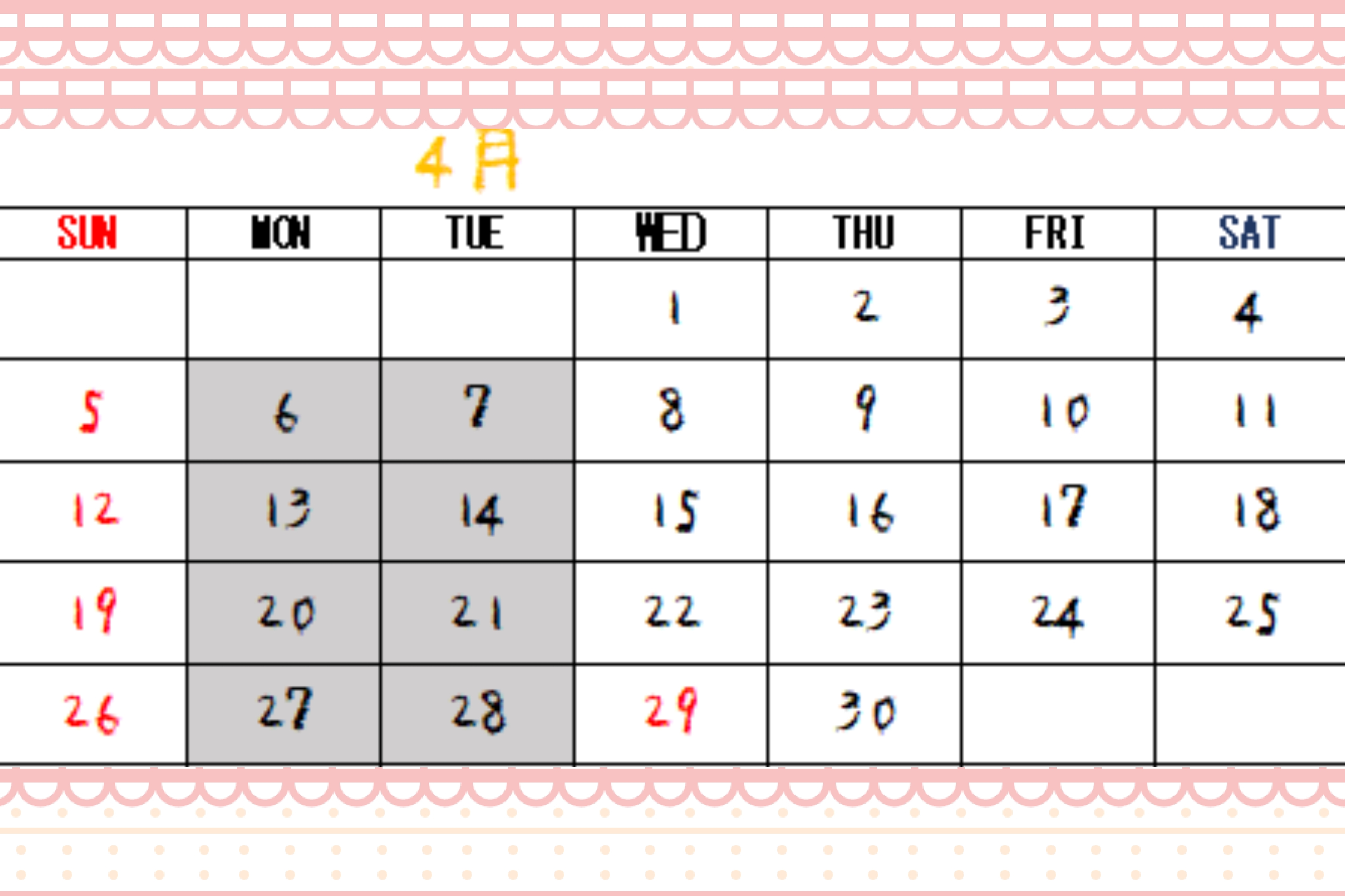 HOME > お知らせ > 休業日・営業時間のお知らせ > 4月の休業日/おしらせ