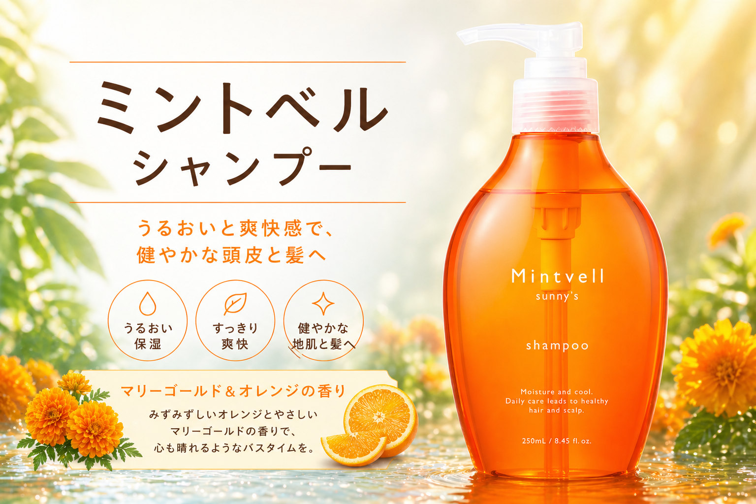 天然メントール(涼感成分)配合で、クールなヘアケアのミントベルシリーズ。
